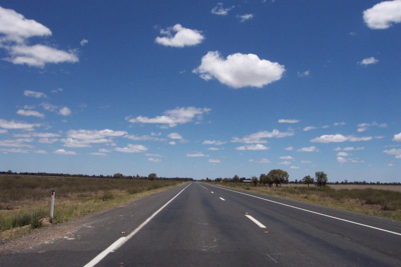 At around 9.30am we decided to head to Moree, as I'd never been there and we thought we could drop into the Bureau of Meteorology office there. My brother and his wife left us to head back home and we went on our way. There were a few distant very weak anvils to the NE that morning, but other than that the sky was very clear. We travelled from Dalby - Moonie - Goondiwindi - Moree. The road was so straight with no traffic, and so it was quite an easy drive!