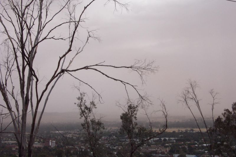 We watched one for a little bit, as this was the most exciting thing we'd seen! It was pretty featureless however, but did kick up some very strong winds which were quite exciting! On top of this, the dry conditions meant that the winds whipped up a lot of dust, and we soon found ourselves in the middle of a dust storm. We continued on our way to Wagga, soon getting ahead of the showers and dust (no thunder was heard at all). At Wagga we found a bit of a look out and watched the dust hit the town.