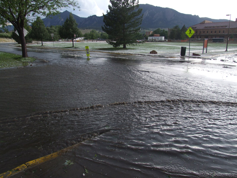 Supercell storms are not uncommon in the plains of eastern Colorado and regularly produce large damaging hail, damaging winds and occasionally tornadoes. However, in the mountainous terrain and along the base of the Front Range, storms of this intensity are considerably less common. The supercell that went through Boulder on the 24/06/06 was one of the strongest storms in the history of the town and resulted in flash flooding, strong winds and hail damage to vegetation, although hail damage to cars was limited due to the small size and softness of the hail.