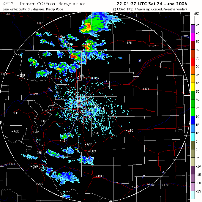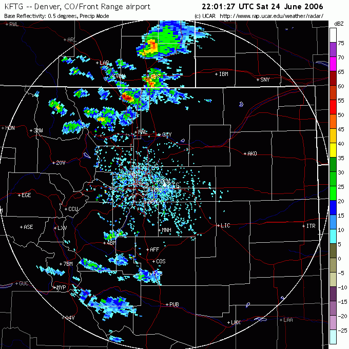 On 24/06/06 much of eastern Colorado was rated at a slight risk of severe storms, with primary threat believed to be damaging winds and hail. The following was released from the National Weather Service: