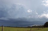 As the storm approached, a probable wall cloud became visible but it seemed the whole system was becoming more oriented into a spectacular linear shelf cloud formation. Lightning was also becoming more frequent as it slowly approached. The left moving nature of the storm and reasonable wind shear in the lower to mid layers meant this storm was probably supercellular. Hail to 3cm was reported.